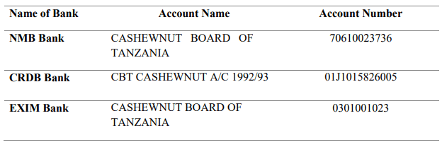 For more information please visit our website www.cashew.go.tz or you can visit the Cashew nut Board Office Head Quarter in Mtwara or Our branches: Dar es Salaam, Tunduru, Tanga, Lindi and Manyoni.