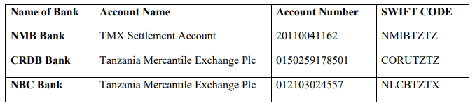 (i) Buyers will be required to register through Tanzania Mercantile Exchange (TMX) by submitting the Buyer’s Declaration Form (available at https://tmx.co.tz/infodesk.php) attaching the following documents: